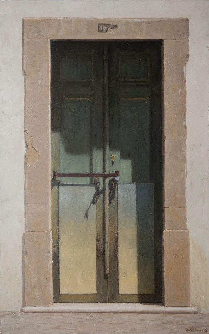 Harry Holland almost needs no introduction; he is widely regarded as one of Britain’s finest figurative artists. Born in Glasgow and trained at St. Martin’s School of Art, London, he has been based in Cardiff since 1973. His works often feature enigmatic figures and have a sense of introspection. His paintings invite the viewer to explore layers of meaning and emotion. We are delighted to feature work from Harry in this summer show, including a series of doorways and still lives amongst his more well-known figurative work. His series of door paintings are a captivating exploration of thresholds, both literal and metaphorical. The doors become symbols of mystery, transition, and hidden narratives. Holland’s meticulous attention to detail and play of light creates an atmosphere that invites the viewer to imagine the stories behind these portals. Each painting beckons us to consider what lies beyond, making the ordinary extraordinary.